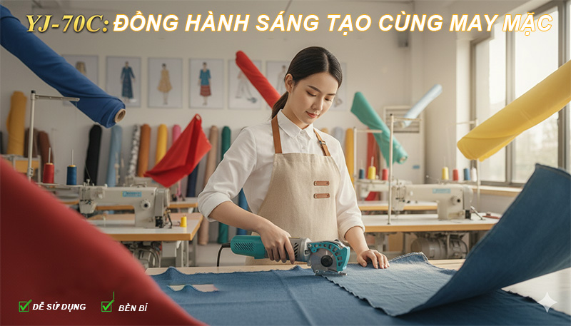 Máy cắt vải cầm tay YJ-70C là lựa chọn lý tưởng cho các xưởng cần thiết bị nhỏ gọn – mạnh mẽ – đường cắt đẹp – hoạt động bền bỉ. Với khả năng cắt đa dạng vật liệu và vận hành đơn giản, YJ-70C giúp tối ưu hiệu suất và nâng cao chất lượng sản phẩm cho xưởng của bạn.